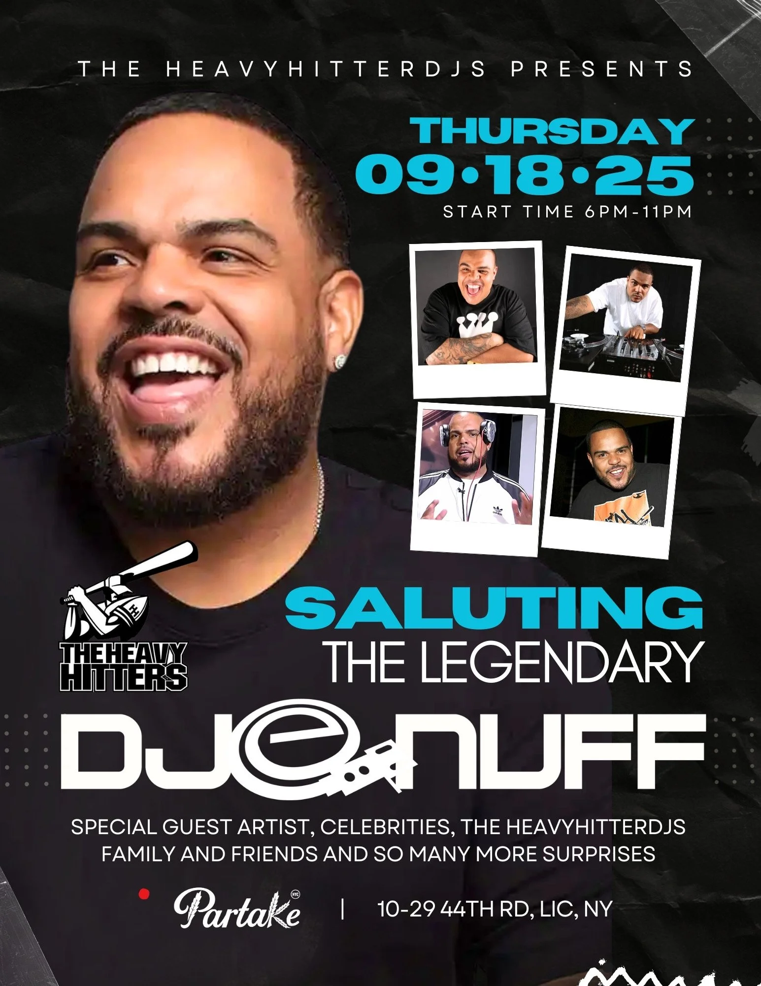 We are celebrating The Legendary DJ Enuff! with good vibes, All the HeavyhitterDJs, Special Guest Artist, and a night you won’t forget.